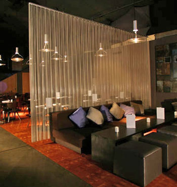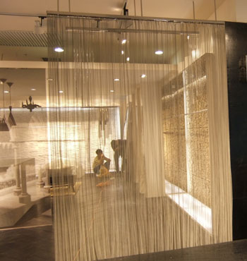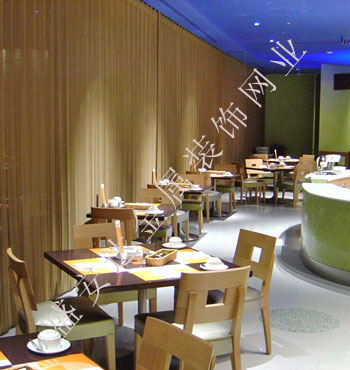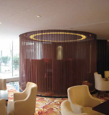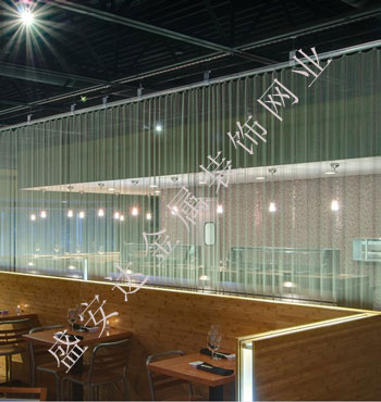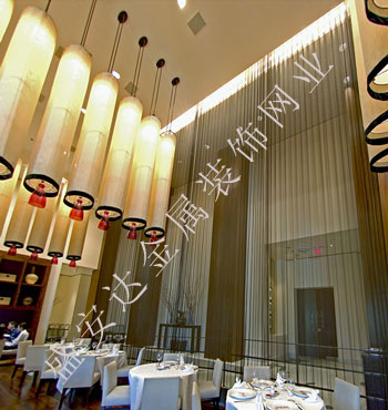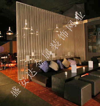金屬網簾可被應用于大尺寸的割斷或正面裝飾,亦可小面積的局部裝點。其天然金屬色澤隨著光線的不同變化余燈光產生的反射作用,透過金屬網,形成一個隔而不斷的整體空間,給人以視覺上的開闊感,想象空間無限。