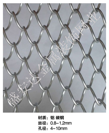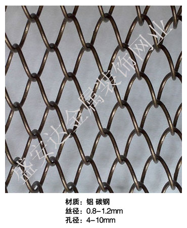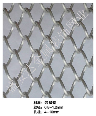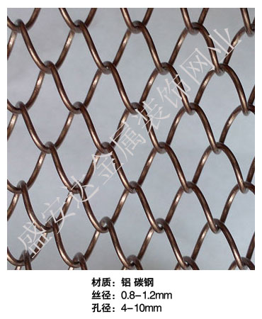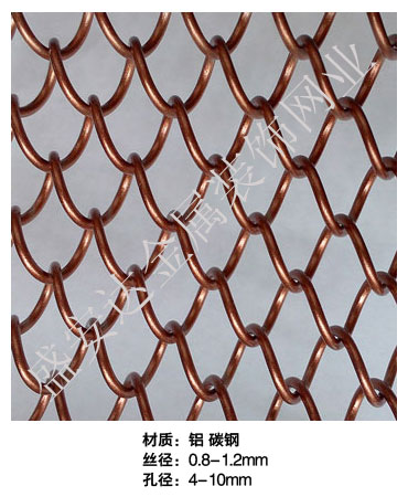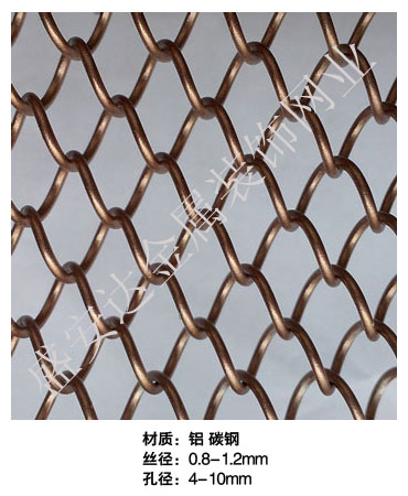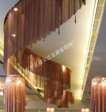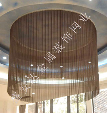 金屬網簾----是一種新型建筑裝飾材料,采用優質不銹鋼,鋁合金等合金材料,經過特殊工藝編制而成,被賦予了傳統布簾所不具有的的折光效果,讓它具有了動感時尚的特點,再加上它的金屬質感的特點,給您的居室頓感典雅氣質非凡個性高貴品位,會使高檔賓館,餐廳,歌劇院,展廳變的富麗堂皇。