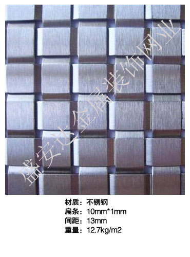 本產品,采用優質不銹鋼、黃銅、磷銅編織而成,從拉絲、捻股、合繩、拋光、漂洗、織網、銷售及售后服務等方面入手,逐漸形成生產與銷售一條龍服務。產品具有經久耐用,華麗高檔,科技含量高等特點,被廣泛應用于高級建筑的窗簾、吊頂、樓梯、電梯、豪華辦公大樓、賓館、豪華舞廳、營業大廳等建筑物的室內外裝飾,在燈光照射下金碧輝煌,典雅精致。