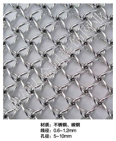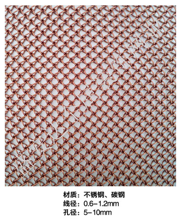蜂巢網(wǎng)----,是一種新型建筑裝飾材料,采用優(yōu)質(zhì)不銹鋼,鋁合金等合金材料,經(jīng)過(guò)特殊工藝編制而成,被賦予了傳統(tǒng)布簾所不具有的的折光效果,讓它具有了動(dòng)感時(shí)尚的特點(diǎn),再加上它的金屬質(zhì)感的特點(diǎn),給您的居室頓感典雅氣質(zhì)非凡個(gè)性高貴品位,會(huì)使高檔賓館,餐廳,歌劇院,展廳變的富麗堂皇。